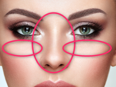- 鼻筋: 鼻筋にハイライトを入れて、鼻を高く見せましょう。