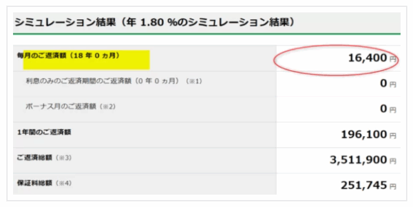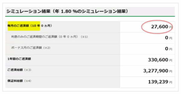 10年で返済する場合、毎月27,600円、最長18年で返済する場合、毎月16,400円の返済額になります。