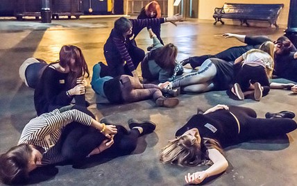 学校の住所までたどり着いたら、スタジオは地下にあります。