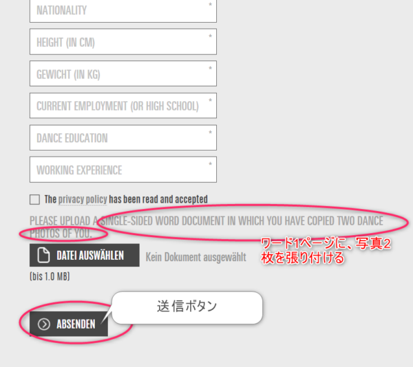 オーディション申請書類:https://www.oper-leipzig.de/en/das-leipziger-ballett/audition URLを検索してください。申請書式が決まっています。