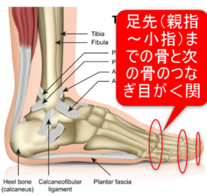 ↑ 図をみると 1・足指の骨と次の骨を繋いでいるのが<2・関節>。