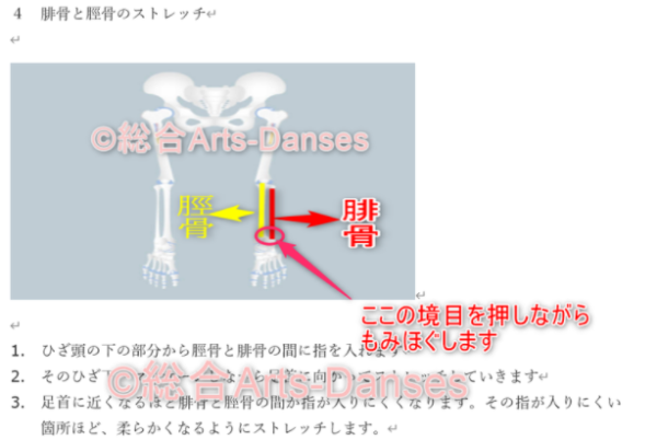 腓骨と脛骨のマッサージでたまっているリンパを流し血流をよくし足首の筋肉をやわらかくする方法です。